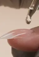 Pick up a medium bead of product. Place the bead in the cuticle area and gently nudge the product towards the cuticle and from side to side, leaving a small free margin.
